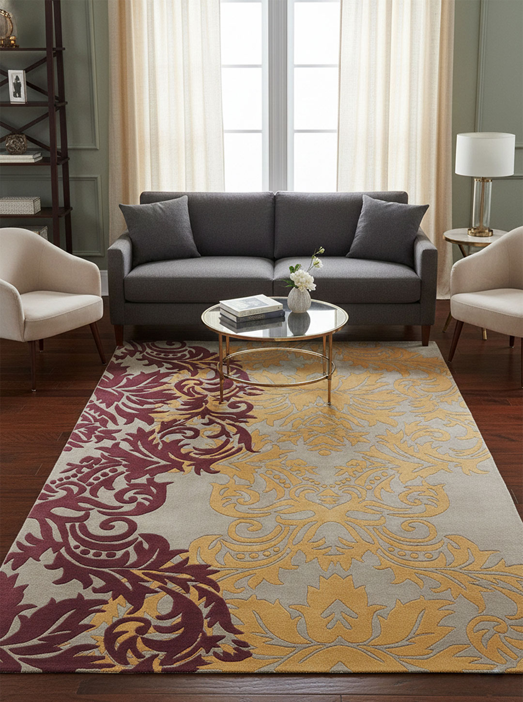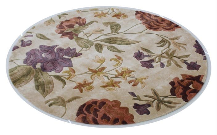 100% Nz Wool Handtufted Carpet in Floral style, Beige Color Rug – RC101