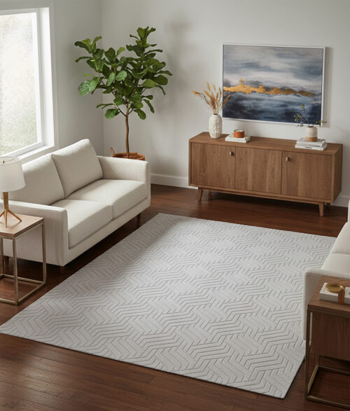 100% Bamboo Silk Handmade Carpet in Geometric style, Beige color Handtufted Rug – RC937