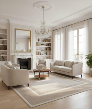 100% Bamboo Silk Handtufted Carpet in Floral style, Beige Color Rug - RC07