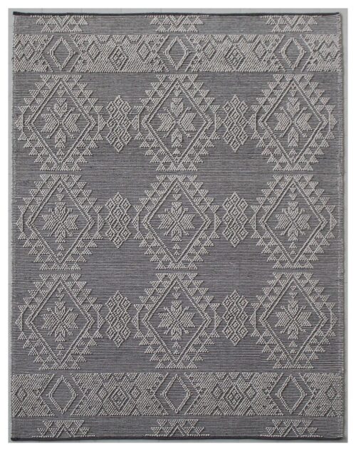 100% Wool Handmade Carpet in Geometric style, Grey color Handwoven Rug – RC450