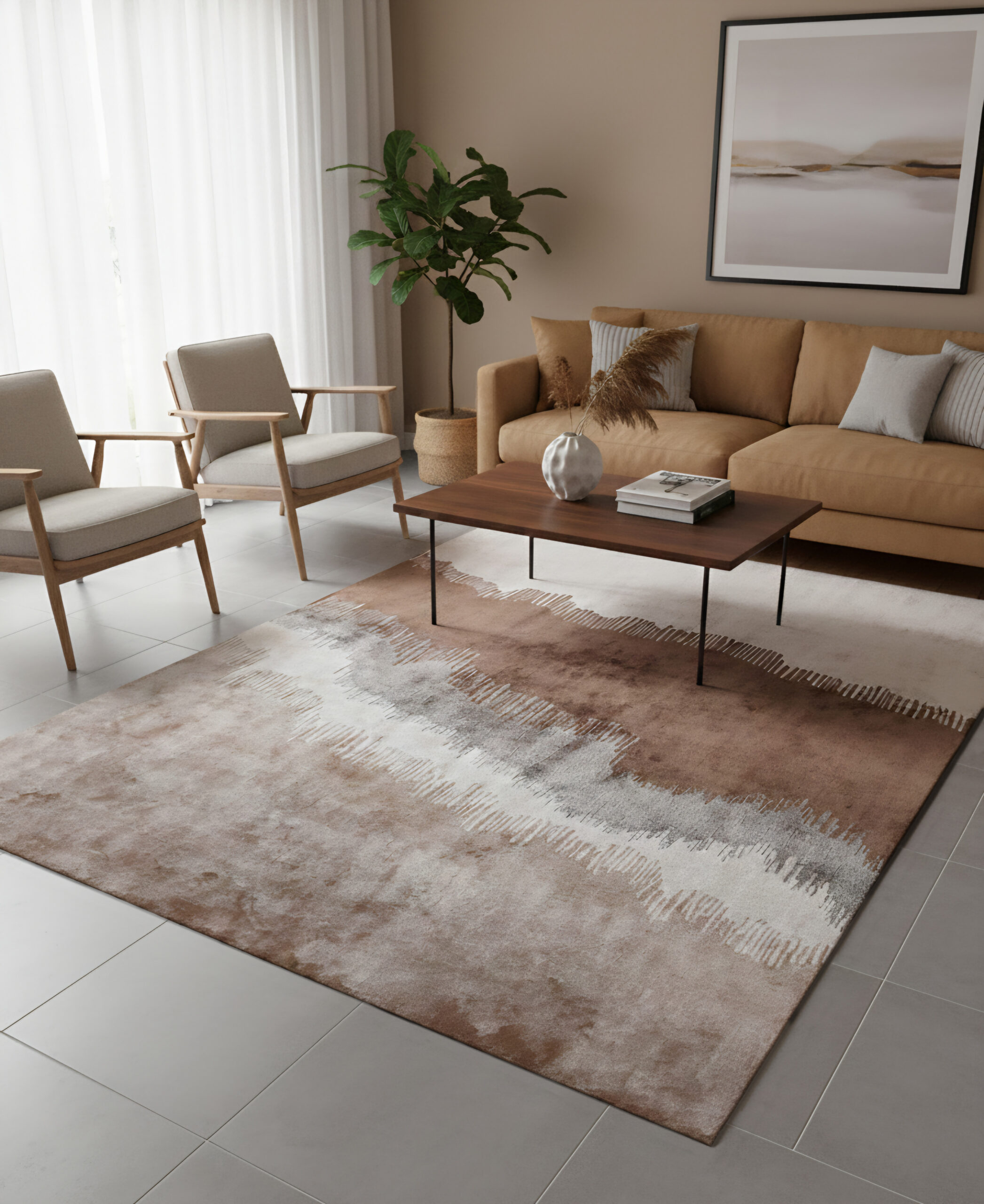 100% Bamboo Silk Hand Tufted Rugs in Plain style, Brown Color Rug – RC820
