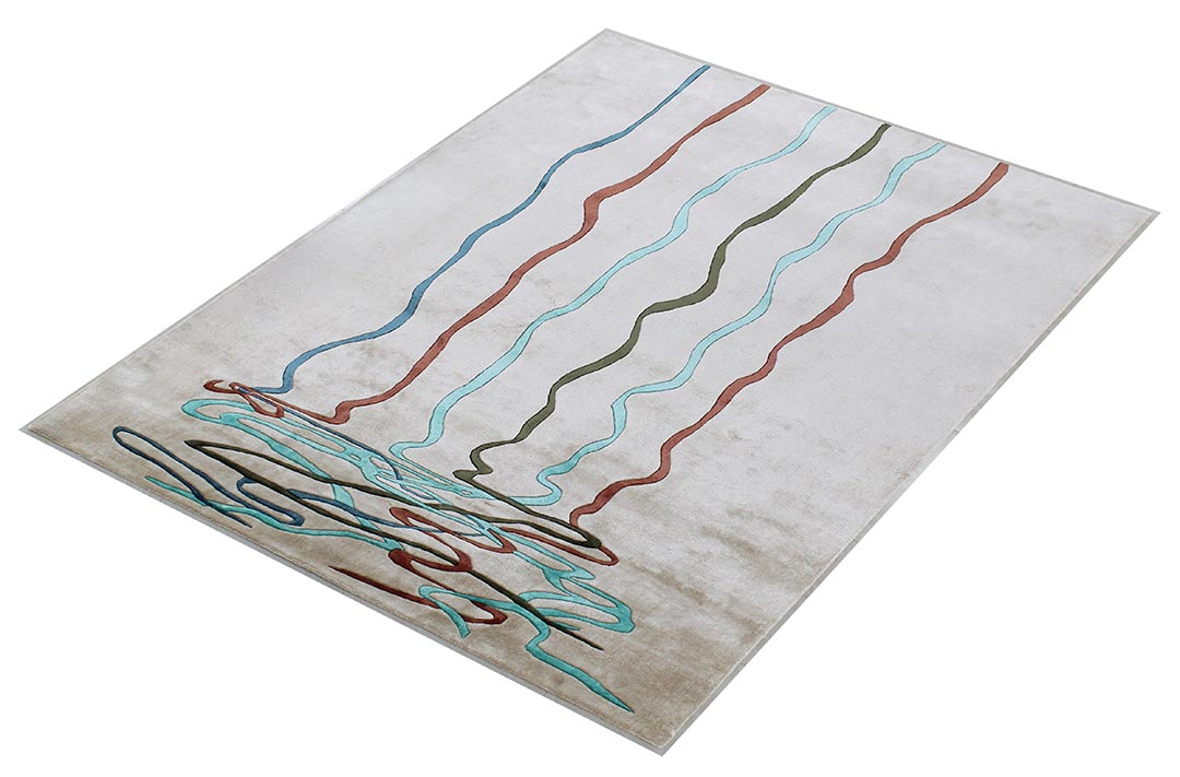 100% Bamboo Silk Handmade Carpet in Abstract style, Beige color Handtufted Rug – RC659