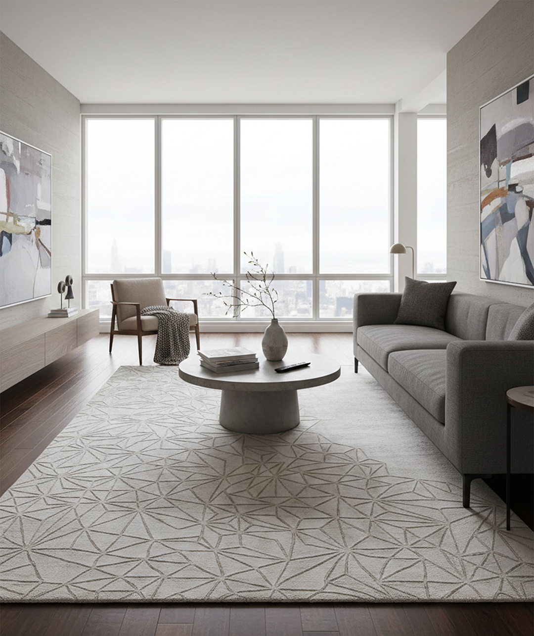 100% Bamboo Silk Handmade Carpet in Abstract style, Grey color Handtufted Rug – RC957