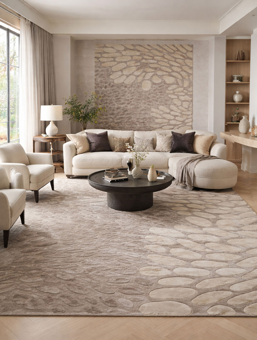 100% Bamboo Silk Handmade Carpet in Contemporary style, Beige color Handtufted Rug – RC933