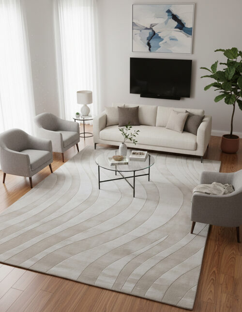 100% Bamboo Silk Handmade Carpet in Stripe style, White color Handtufted Rug – RC842
