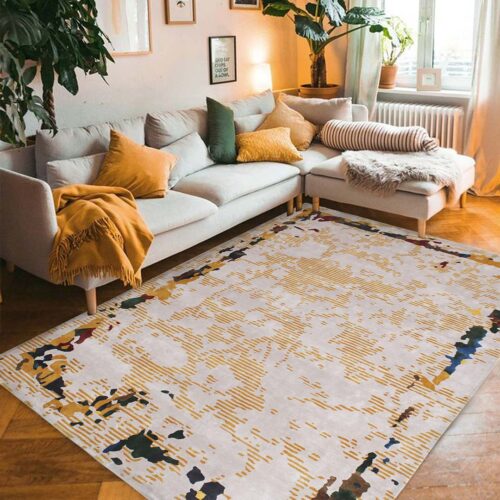 100% Bamboo Silk Handtufted Carpet in Abstract style, Gold Color Rug – RC549