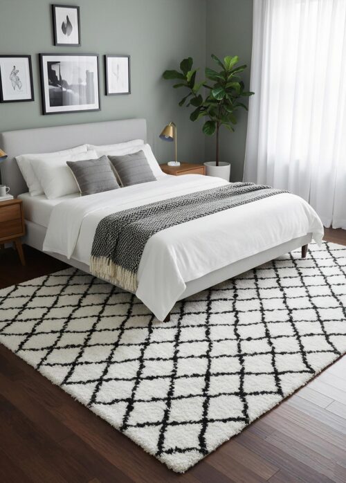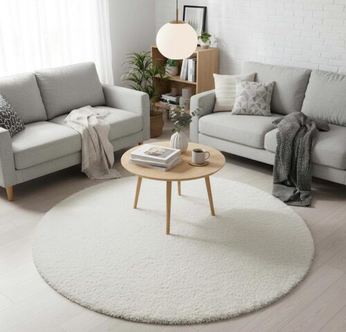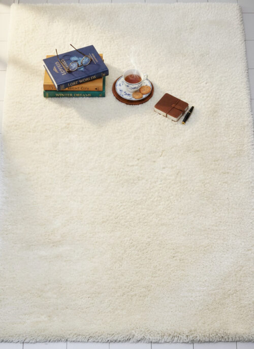 100% Polysester & BCF Handmade Carpet in Plain style, White color Shaggy Rug – SH104