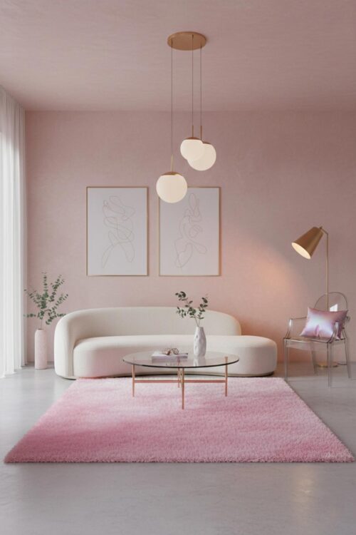 100% Polysester & BCF Handmade Carpet in Plain style, Beige color Shaggy Rug – SH84