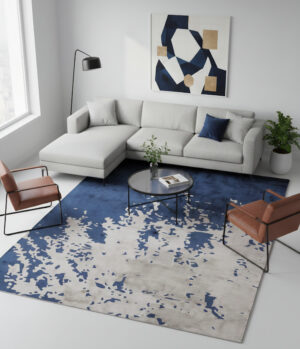 100% Bamboo Silk Hand Tufted Rugs in Plain style, Blue Color Rug – RC807