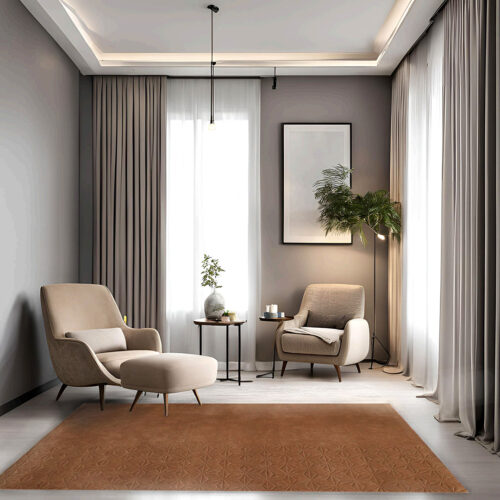 50/50% Nz Wool&Bamboo Silk blend Handtufted Carpet in Geometric style, Brown Color Rug – RC838