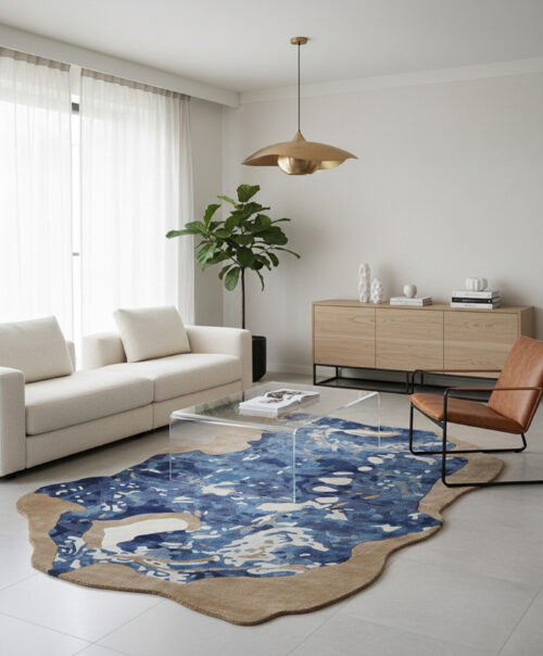 Blend of Bamboo Silk & New Zealand Wool Handmade Carpet in Abstract style, Multi color Handtufted Rug – RC887