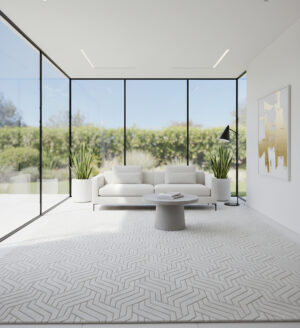Simple design rugs like neutral-toned, striped, or abstract patterns are ideal for a modern home.