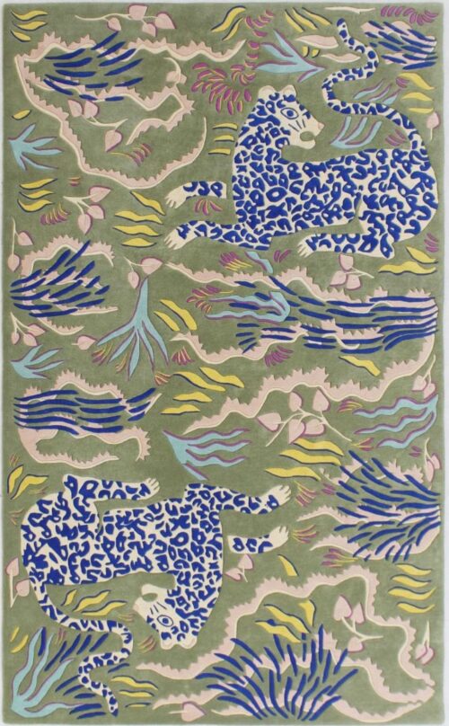 100% Wool Handmade Carpet in Abstract style, Green color Rug Handtufted Rug RC332A