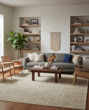 100% Bamboo Silk Handtufted Carpet in Modern style, Beige Color Rug – RC745